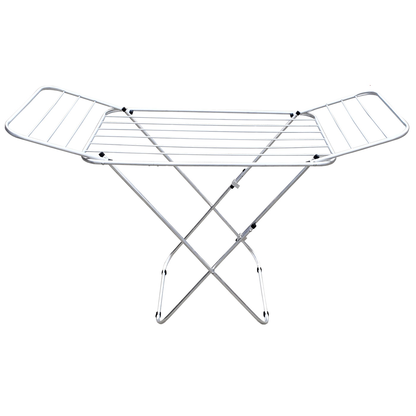 Com abas laterais retráteis, o varal amplia a área útil para acomodar peças maiores como toalhas, calças e lençóis, proporcionando mais versatilidade. Quando fechado, ocupa pouco espaço, sendo fácil de guardar e transportar.