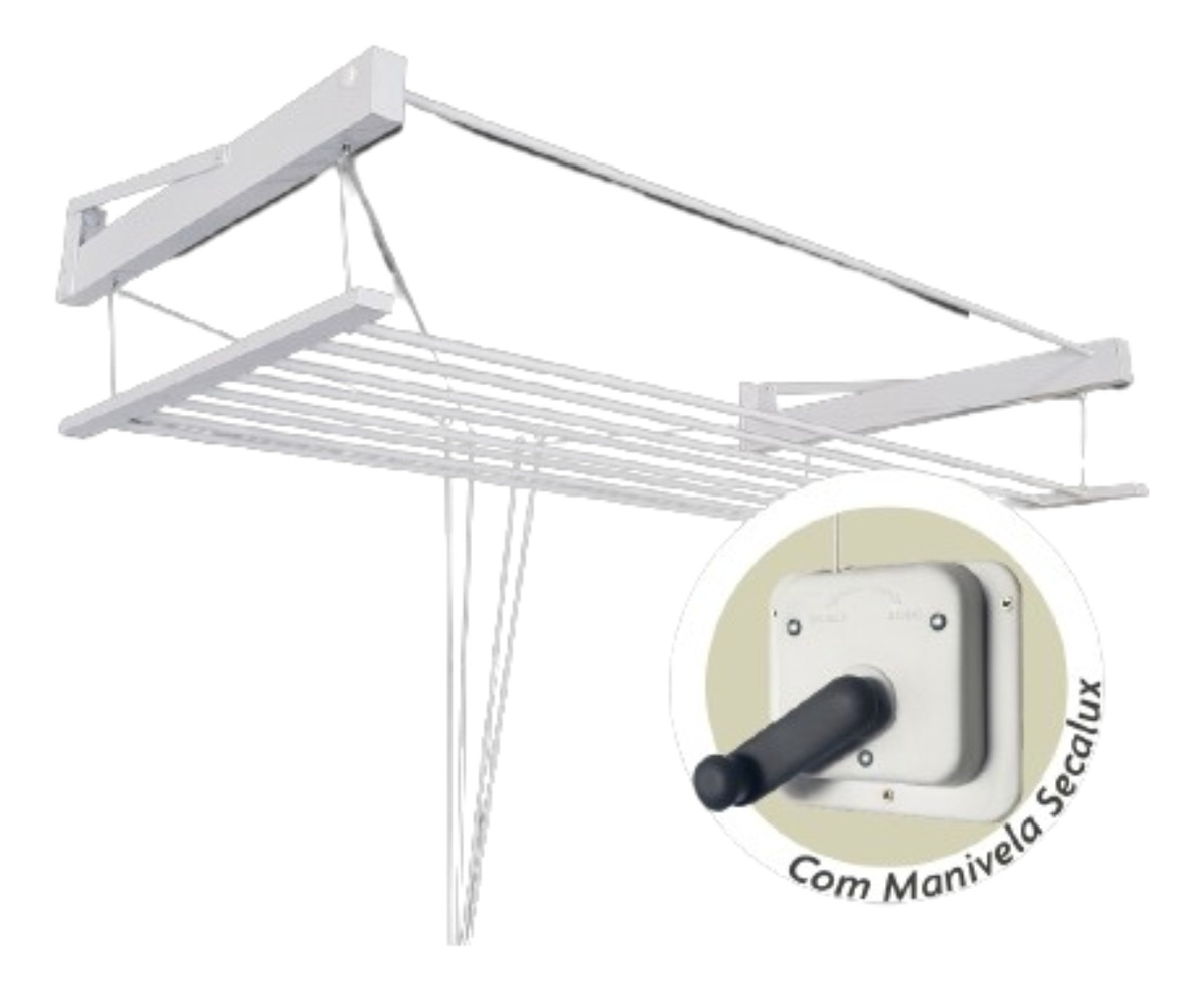 Varal de Parede Alumínio 10 Varetas 110 cm Clássico com Manivela